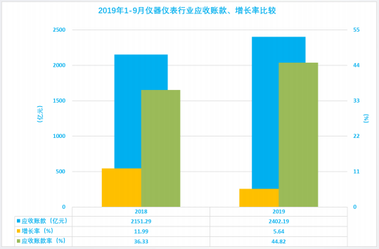 2.9 儀器儀表行業(yè)歷年1-9月應(yīng)收賬款、增長(zhǎng)率、應(yīng)收賬款率比較