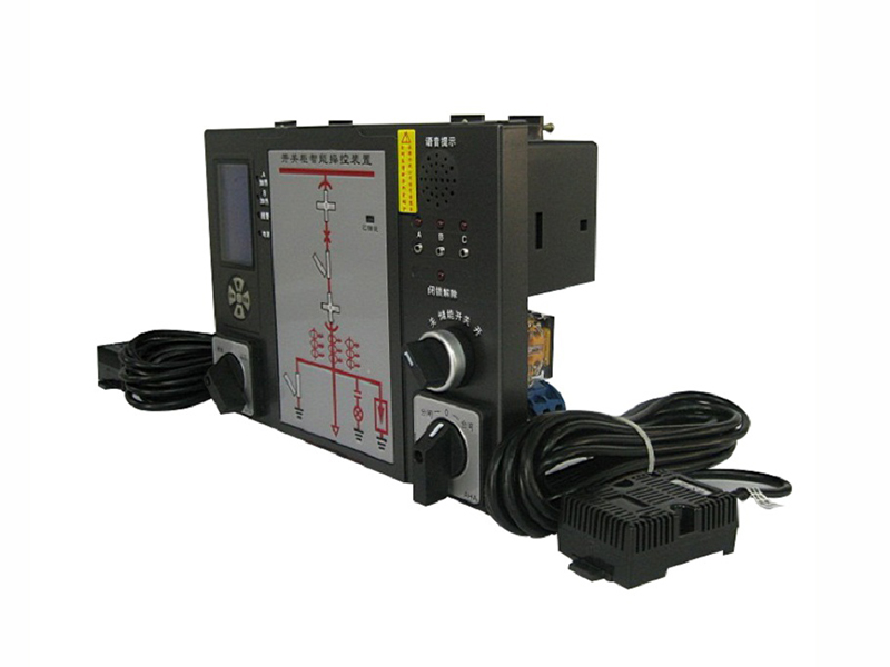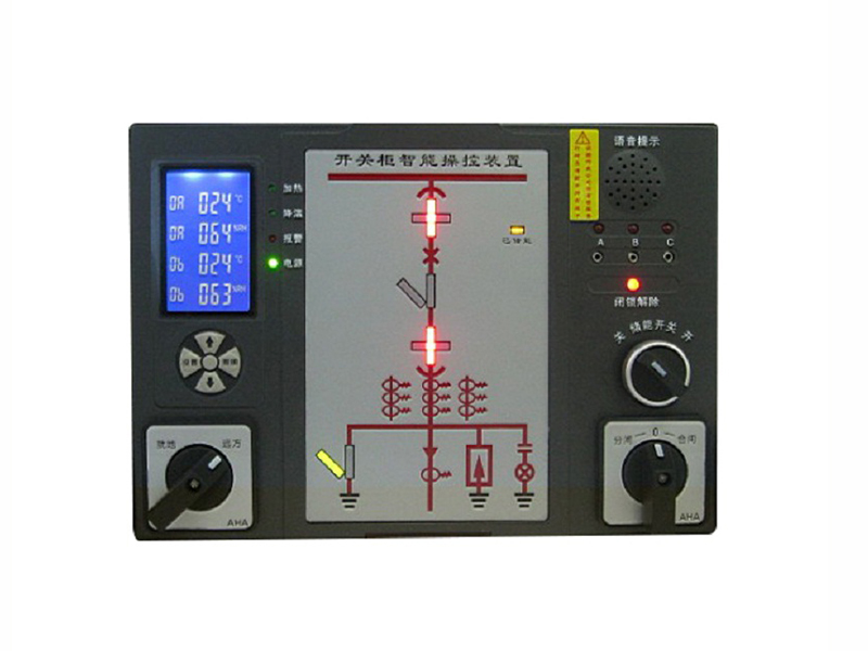 智能操控裝置具有一次回路模擬圖及開關狀態(tài)指示,高壓帶電顯示,自動溫濕度控制,人體感應自動照明,語音提示,電參數(shù)測量及RS485通訊接口等眾多功能,集操作、顯示于一體。